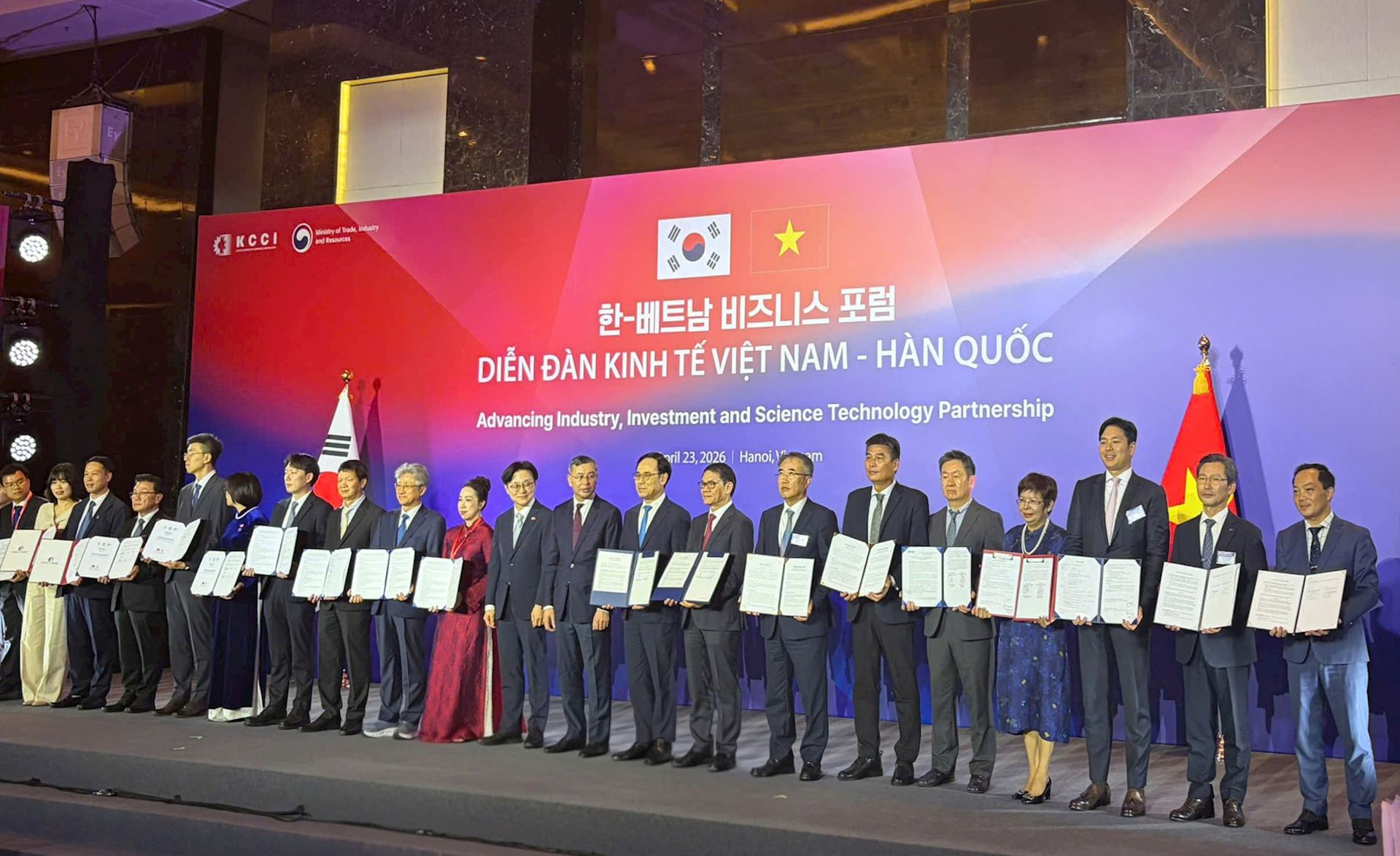 Trong khuôn khổ chuyến thăm cấp Nhà nước tới Việt Nam của Tổng thống Đại Hàn Dân Quốc Lee Jae Myung và Phu nhân, chiều 23/4, tại Hà Nội, Phòng Công nghiệp và Thương mại Hàn Quốc ( KCCI) cùng Bộ Tài chính Việt Nam chủ trì và đồng tổ chức Diễn đàn kinh tế Việt Nam - Hàn Quốc với chủ đề Nâng cao quan hệ đối tác chiến lược phát triển công nghiệp, đầu tư và khoa học kỹ thuật giữa hai quốc gia.