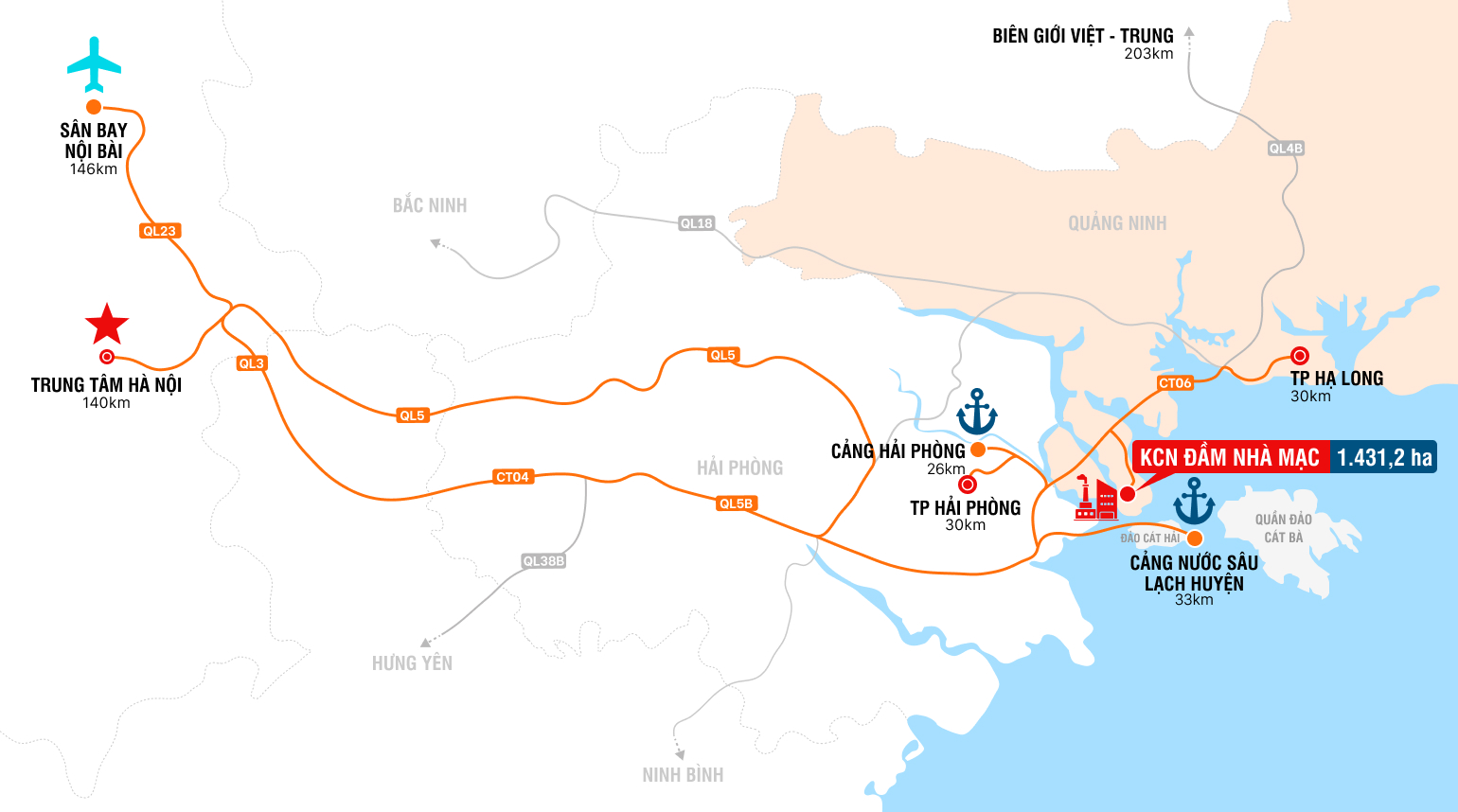 KCN nằm gần các tuyến đường quốc lộ 10, quốc lộ 18 và cao tốc Hải Phòng – Quảng Ninh.