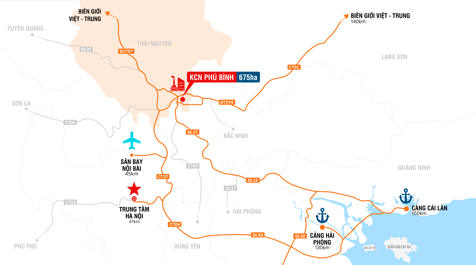 + Hải quan: Chi cục Hải quan Thái Nguyên cách 25 km.