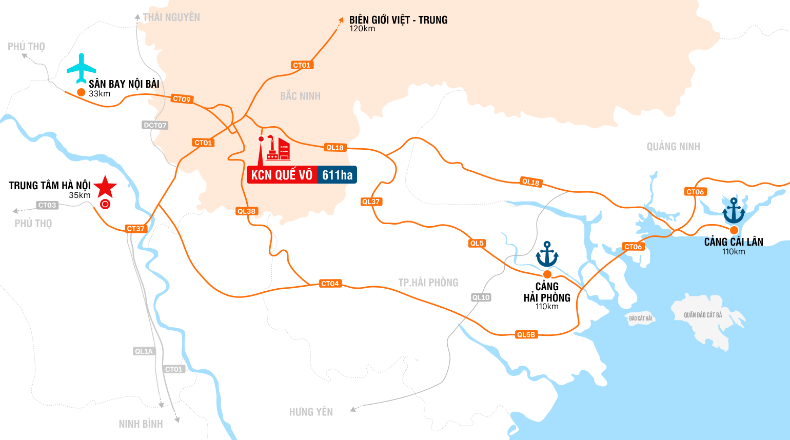 + Kho ngoại quan: nằm ngay trung tâm của KCN Quế Võ, tạo điều kiện thuận lợi cho việc lưu kho, bến bãi, làm thủ tục Hải quan, dịch vụ vận chuyển và xuất nhập khẩu hàng hóa.